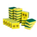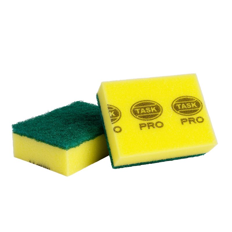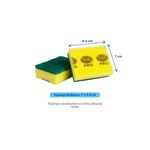 Esponjas absorbentes con fibra abrasiva verde y espuma lisa de poliuretano que permite remover la suciedad adherida con el lado abrasivo y absorber el exceso de humedad con su espuma.