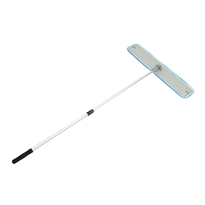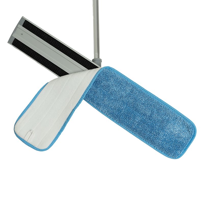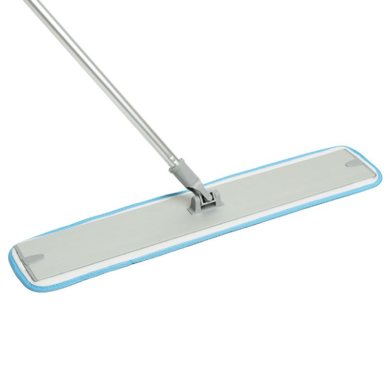 Mopa plana de microfibra con cabo extensible, cabezal de aluminio y mopa de microfibra lavable con sistema de velcro para un fácil intercambio y manipulación. Cabo extendido: 110CM Cabo contraído: 61CM Cabezal microfibra: 60CM