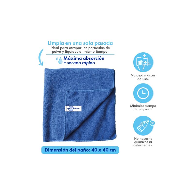 Paño de microfibra. Ideales para atrapar las partículas de polvo y líquido en una sola pasada, sin necesidad de químicos ni detergentes y sin dejar marcas. Son resistentes a los lavados frecuentes.