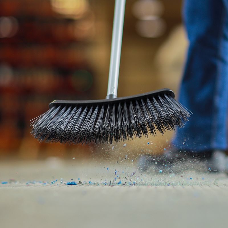 Escoba dura ideal para barrer espacios externos. Sus cerdas están fabricadas de PET duras, el material empleado el cual se utiliza para su fabricación es de material plástico recuperado. Longitud de barrido: 36cm. Largo de la fibra: 9cm. Longitud de la base: 28cm.